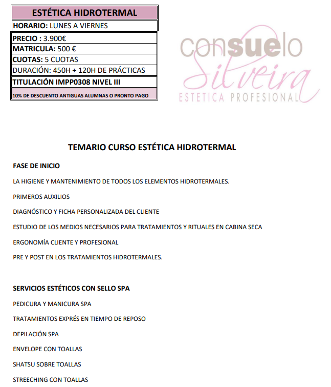 Este certificado de profesionalidad te permitirá desarrollarte profesionalmente en los mejores SPAS , Balnearios, Talasos, Cruceros, Wellness, etc. Curso de comienzo rotativo. Pregunta por la próxima fecha de Inicio